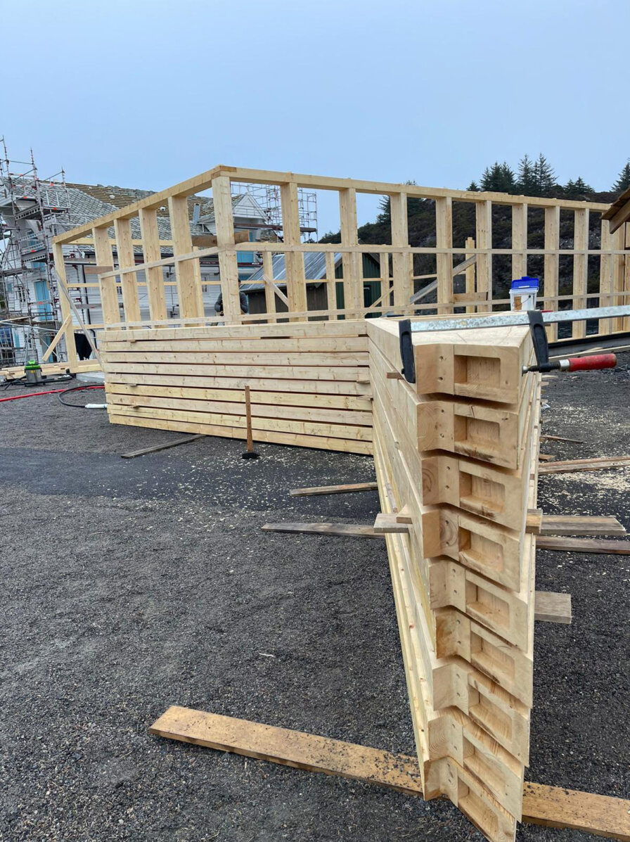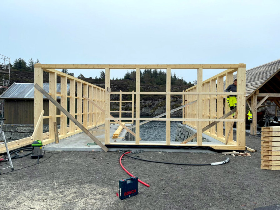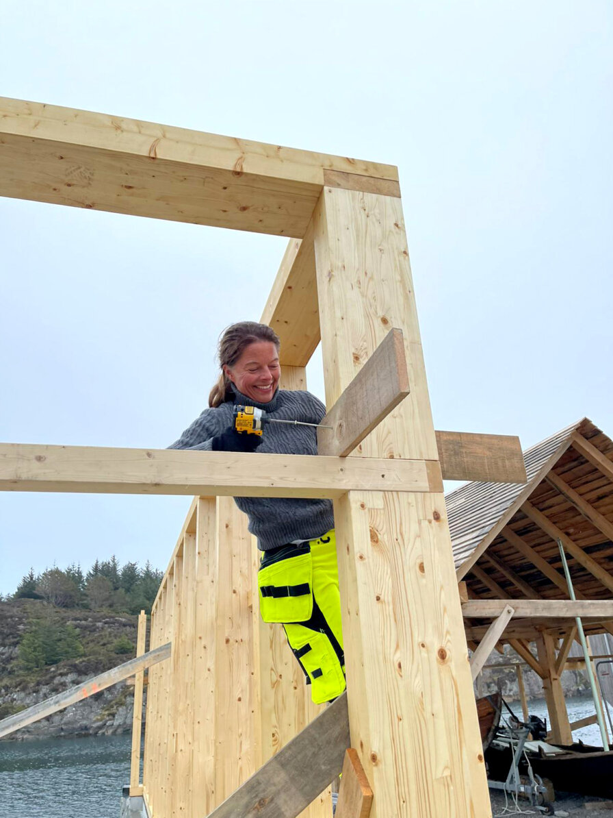 In May we assembled the office’s first “grindanaust”, a traditional Norwegian building typology. A contemporary reinterpretation of traditional wood works, our design is informed by CNC-elements construction technique. Joints and angles are milled with precision, allowing for an intuitive, step-by-step assemblage which is mostly achieved by manual labour, on site in Øygarden, near Bergen. So, while the architecture emerges of machine manufacturing, its production is ultimately the result of human work – as in the old days, when owning a boat was vital for Norwegian coast dwellers. A central means of transportation (one had to row to church, to the fishing nets and nearby trading posts), boats historically demanded robust infrastructure: the grindanaust, a specific type of boathouse, is the common type in the West. In addition to their shielding function, boathouses were also workplaces, gathering spots, and status signifiers.