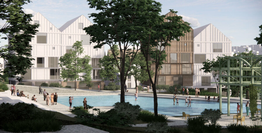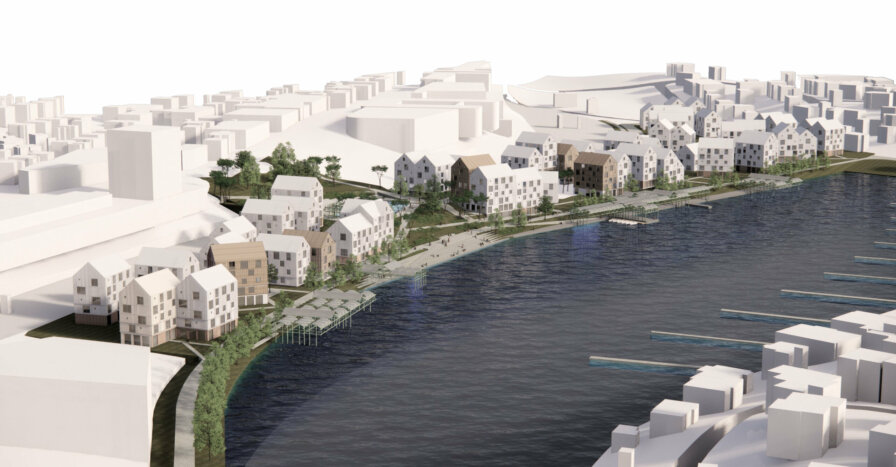 We traveled to Stavanger yesterday to deliver and present our vision for the prime Paradis waterfront area, which will be developed by the city’s municipality in a near future. With our collaborators Dronninga Landskap (landscape) and A/STAB (infrastructure), we developed a masterplan inspired by Stavanger’s tight wood housing neighborhoods, with its calibrated volumes, fun in-between spaces, and generous connection to nearby blue and green elements. Our focus on mixed typologies and roof expressions creates a distinct, fragmented profile (which, if built, will be highly visible) and so is key to the project’s contextual integration and success. Finally, circular principles as well as social sustainability inform the design and placement of diverse buildings and activities. The importance of this site for the good development of Stavanger cannot be understated; we prioritized future-oriented infrastructure and quality living amenities that ensure enough flexibility for coming times, programs and people.