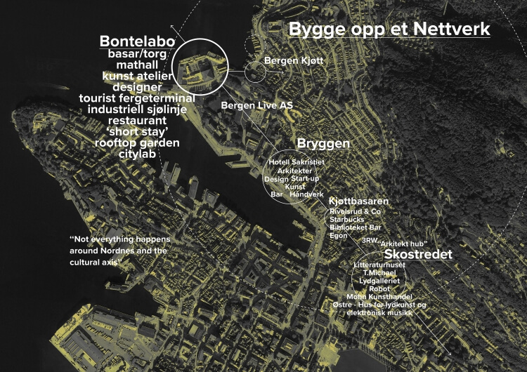 The area today bears strong traces after longstanding fishing and offshore related industries with large wharf areas in asphalt and concrete and a visually complex building mass of varying quality.