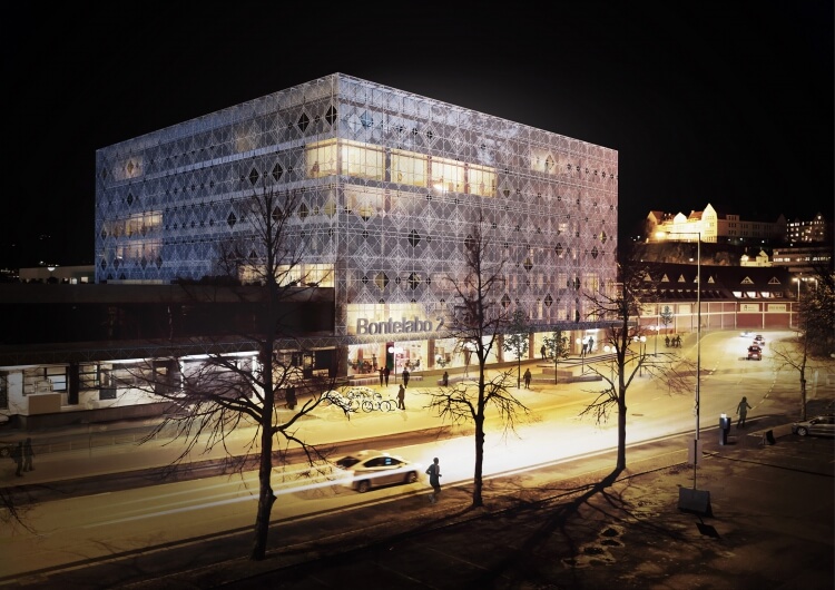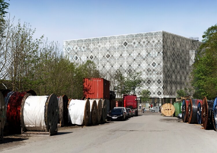 The historical form of the building has not changed. But to achieve usable areas for office and service functions, the building is covered with perforated aluminium plates that give the building a distinctive pattern. This gives the building a decorative touch, which both works for sun protection and prevents sunlight reflection and unnecessary visual noise for the historic fortifications as its nearest neighbour.
