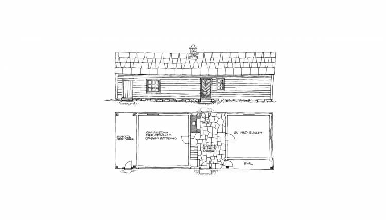 Lemstova – within Western Norwegian vernacular architecture particularly prevalent in the 1800s. Residential building built by two log buildings of normatively equal size and with a half climatized room in-between. The half climatized room was used as kitchen and workroom on cold days, while one log building was for daily living and the other was a fine living room, heated just on special oc-casions. The entire structure has an outer skin in the form of planks. After the transition from smoke ovens to chimneys, it became possible to have a floor on the upper floor. This attic, was used as bedrooms and had an insulating effect to the floor below.