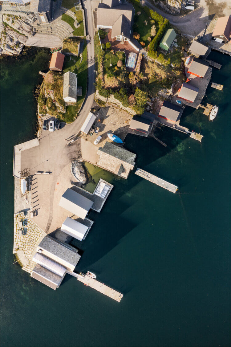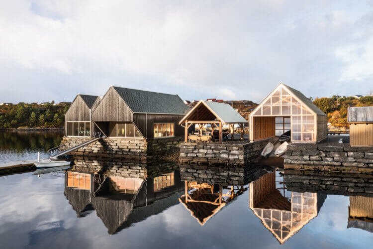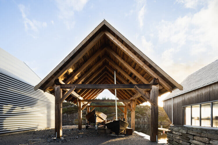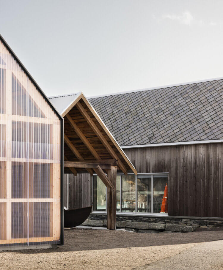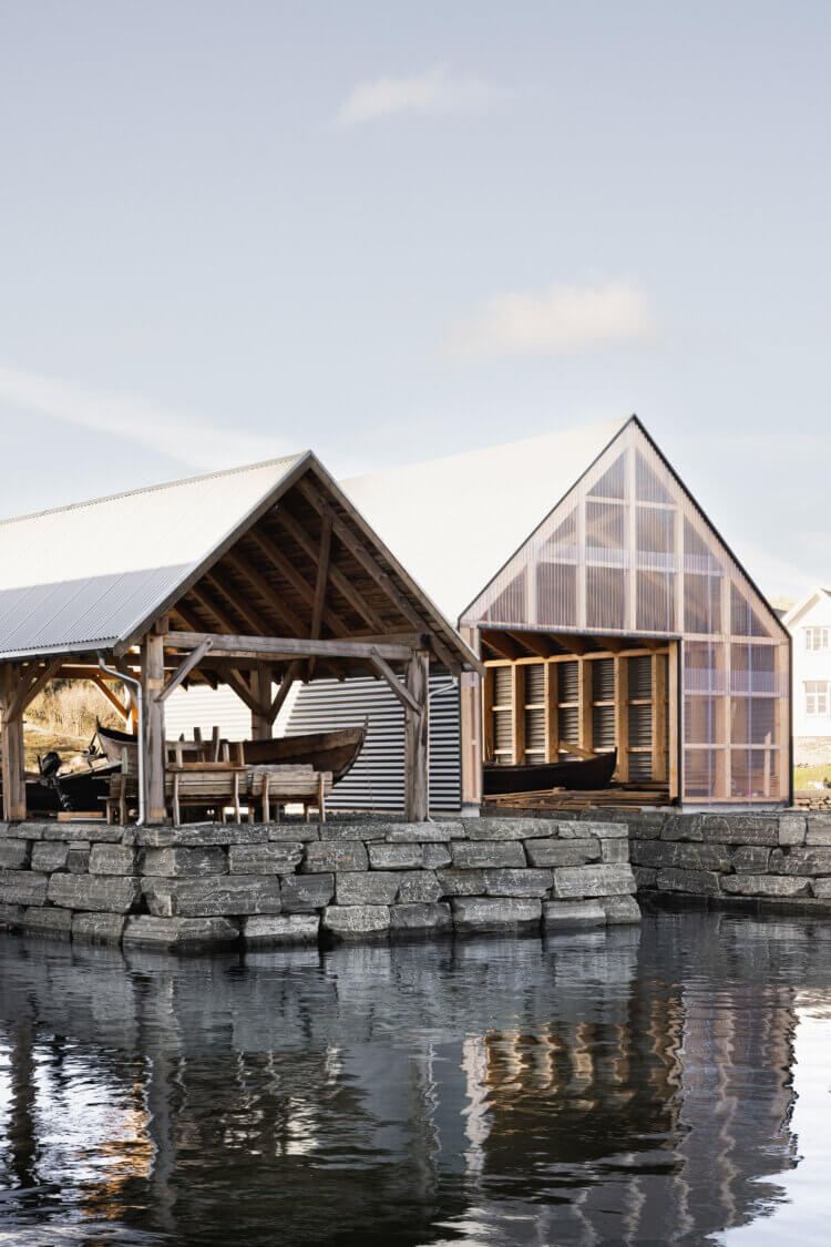 The architecture draws inspiration from various elements of the West Norwegian seafaring tradition, interpreted in our time and shaped to provide new experiences of proximity to the fjord. Emphasis is placed on establishing different degrees of accessibility and contact with the water, and the two seahouses open to the fjord in different ways. The visual language is recognizable and creates continuity in the extension of an authentic boating environment in Ovågen, while new architectural elements clearly signal new use.