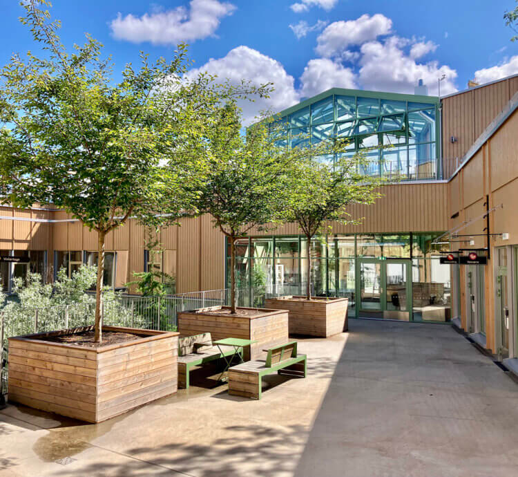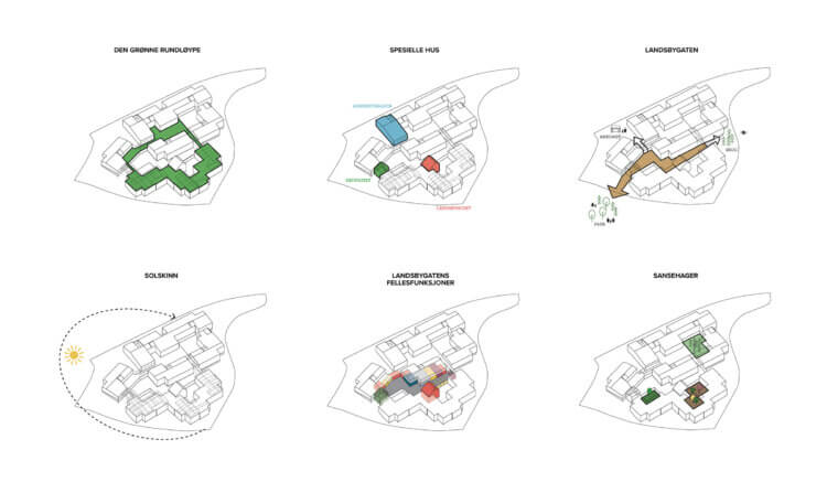 Furuset Hageby is designed like a little village with a central ‘street’ that mirrors a village centre by gathering all important functions. Here residents can go to get a haircut, for dinner, shopping, to the doctor, the culture house, the library, the green house etc. By placing these core functions close together makes them easier to located for both residents and visitors.