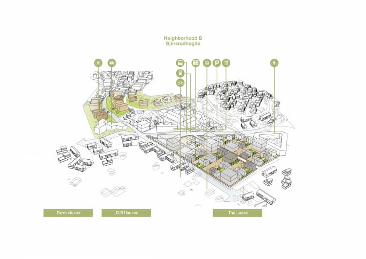 As one of the last and largest development zone in Oslo, Gjersrud Stensrud is under great pressure. To be able to create a balanced living environment close to nature, it is essential to ask our self what areas should and should not be developed. There should be an ambition to make this new district a better living environment than before for animals and plants with the new development.