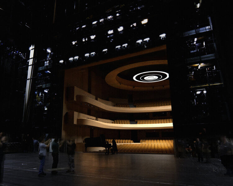 A centrally located staircase between Grieghall and the Music Theatre leads down into a skylit atrium, where the hall’s full height becomes part of the arrival experience. The flexible, accessible layout ensures the theatre will adapt to future needs while serving as a place of shared ownership, cultural curiosity, and year-round public activity.