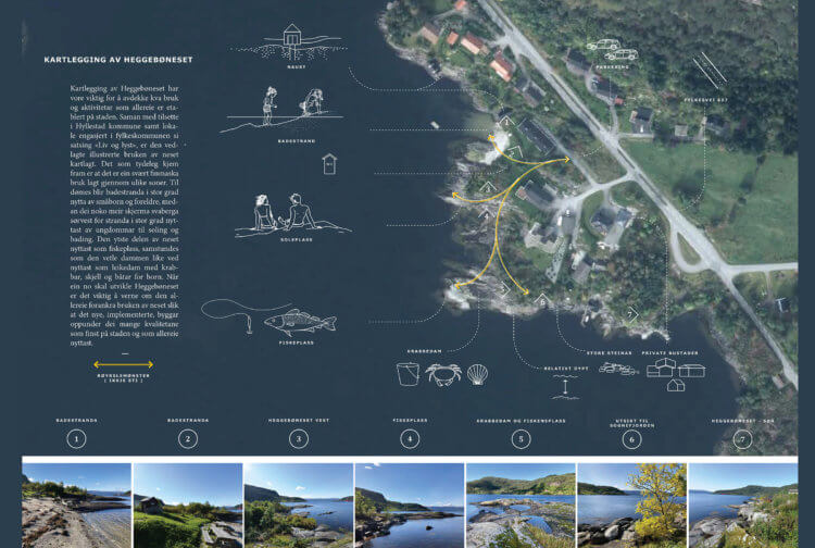 Moglegheitstudien er utarbeidd av 3RW arkitekter på oppdrag frå Hyllestad kommune og i dialog med grendelaget i Leirvik. Studien har som mål å utforske og syne kva potensiale som ligg i å vidareutvikle Heggebøneset som frilufts- og badeområde i Leirvik.