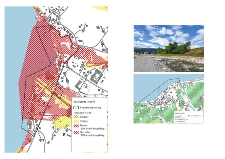 Innvik center has important functions such as a shop, café, fuel, marina, camping, housing, business and more. The population has been relatively stable in recent years, but the supply of housing plots is poor, and there is a need to look at densifying the existing area for housing. Pointing out new areas for industry has also been a key element in the study.