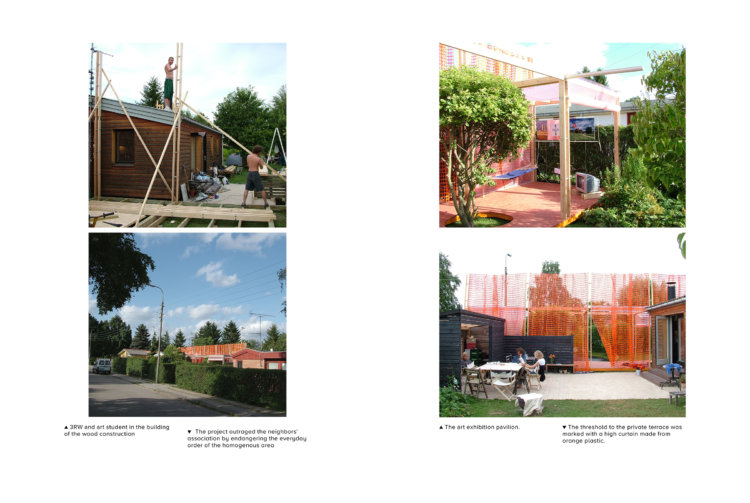“Instant Herlev” invited Nordic artists and architects to deal with the topic of privatized suburban surroundings. 3RW was in charge of creating an exhibition pavilion in a private garden and thereby create a dynamic framework between private and public. The formerly private front garden was redesigned as a small scale public park to invite visitors to the pavilion and endangering the everyday order of the homogeneous area.