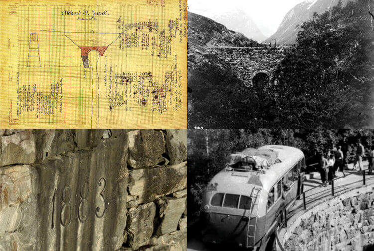 A suspended pedestrian ring completing the old stone-vault bridge built along the historic Strynefjell road