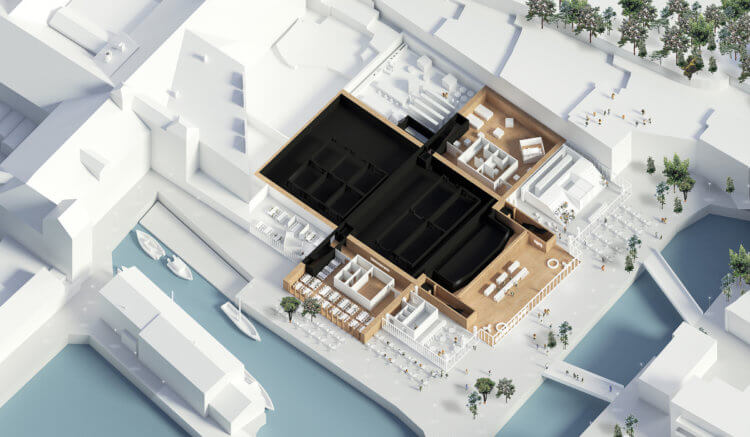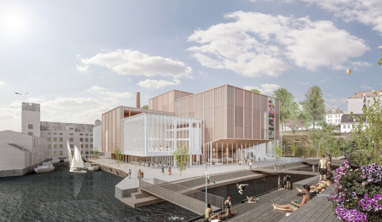 The new Cultural Centre designed by 3RW arkitekter will provide a state-of-the-art multiform cultural centre for USF Verftet, a cultural venue housed in a former sardine factory. Located in Nordnes, a central coastal neighbourhood in Bergen, the project reimagines the site, adjacent to the current venue, as a new public space with a unique relationship with the surrounding fjord water and a building fitted for large-scale theatrical productions. The project aims at strengthening the cultural actors of Bergen at a time when the city’s artistic sector is thriving, consolidating USF as major actor of cultural production within this, provide a new public space with significant volume and flexibility for its programme, and improve circulation and access in this part of town.