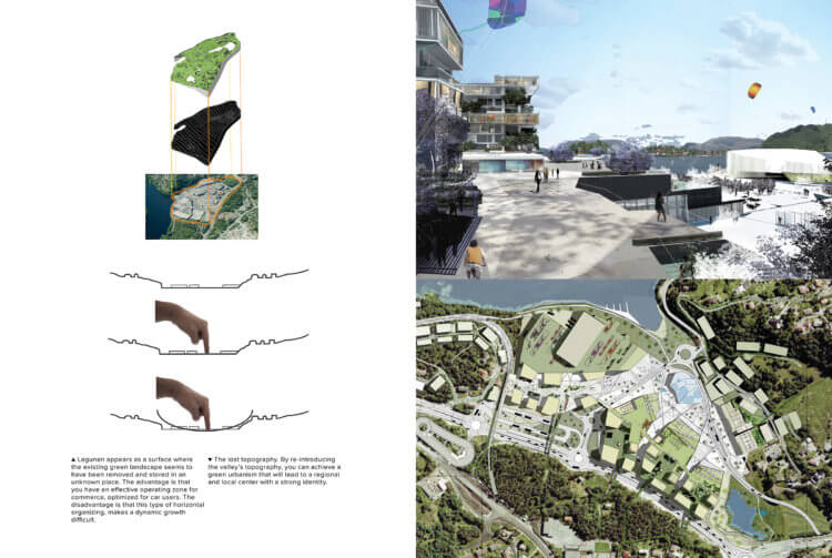 Lagunen as a suburban center has reached the critical moment where it grows out of its own logic and needs an injection of urban programs to redefine its identity. Lack of investment in public infrastructure has resulted in big shopping malls with meaningless surroundings. To stimulate new urban life it is crucial to make the people visible again and establish sustainable visions for the future.