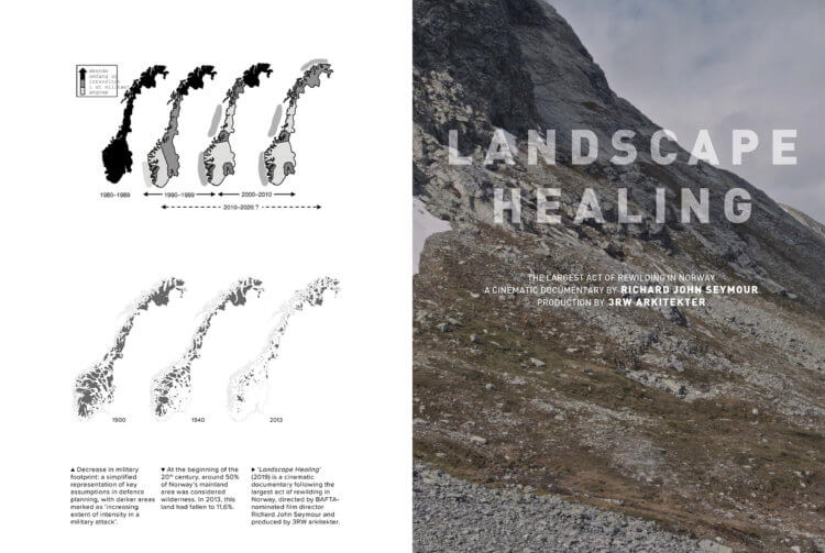 Since the early 2000s, 3RW arkitekter has used architecture skills to structure the process of restoring vast areas of land, owned by the Norwegian Defense Estates Agency (NDEA), who have used these for military training. Within a team of historians, archaeologists, scientists, engineers, politicians and soldiers, 3RW arkitekter play a central role in using architectural methods for the re-imagining of these spaces for restored nature and other societal uses.