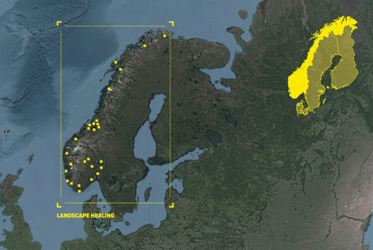 ‘Landscape Healing’ is part of a body of work 3RW arkitekter has been engaged with since the early 2000s. It consists in the restoration of huge areas of land across Norway owned by the NDEA, containing polluted soil and water, unexploded ordnance, and abandoned buildings, after decades of military training activities. The purpose of the project has been to restore these areas back to a state that they can be accessible to the public. When completed, this national undertaking will constitute one of the biggest environmental restoration initiatives in Norwegian history, and will free up more than 20.000 hectares of nature.