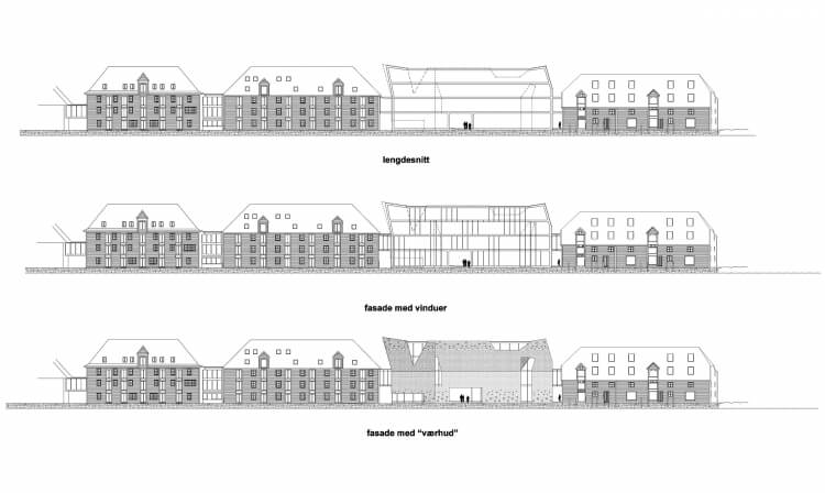 The building will be perceived differently through a day when light from windows will slip through the expanded metal in the evening and through the dark seasons.