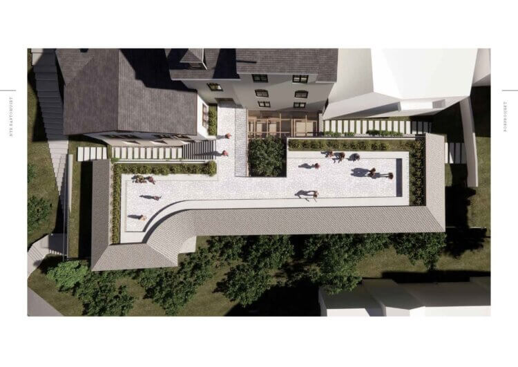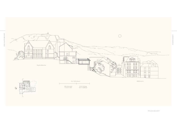 Konseptet er å utforme et stille men vakkert tilbygg som base for de eksisterende historiske bygninger. Altså et verdig og moderne supplement til det vakre jugend bygget og Sveitersvillaen.