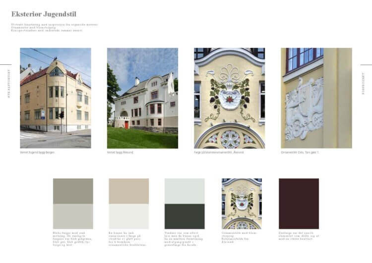 Jugendstilen ble utviklet rundt 1900 som en reaksjon på mekanisering og industrialiseringen som preget datidens samfunn. En mere organisk og ornamentprydet arkitektur ble utviklet. Her hjemme sammenfaller jugendstilen med perioden med murtvang etter den store bybrannen i