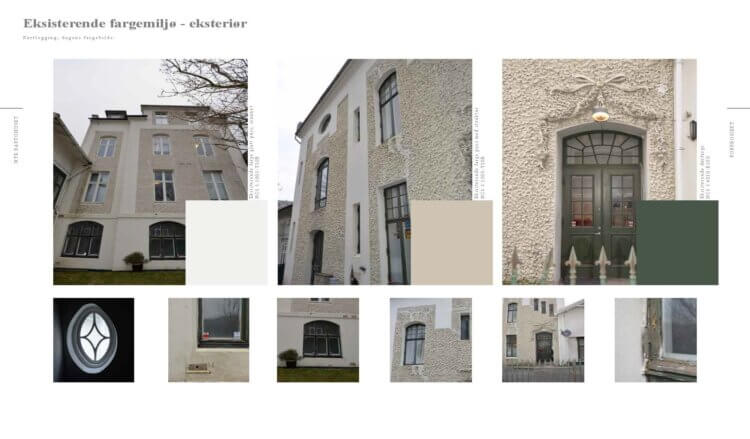 med byantikvar og byarkitekt i Bergen. Eksteriør, interiør, originalfarger og ornamentikk skal ivaretas, og det er gjennomført farge- og materialanalyse for å avdekke historiske lag i bygningsmassen. Nye elementer som nytt inngangsparti, amfi, samt løfteplattform gis et neddempet men klart formuttrykk slik at det er enkelt å lese de ulike tidsepoker i bygningene.