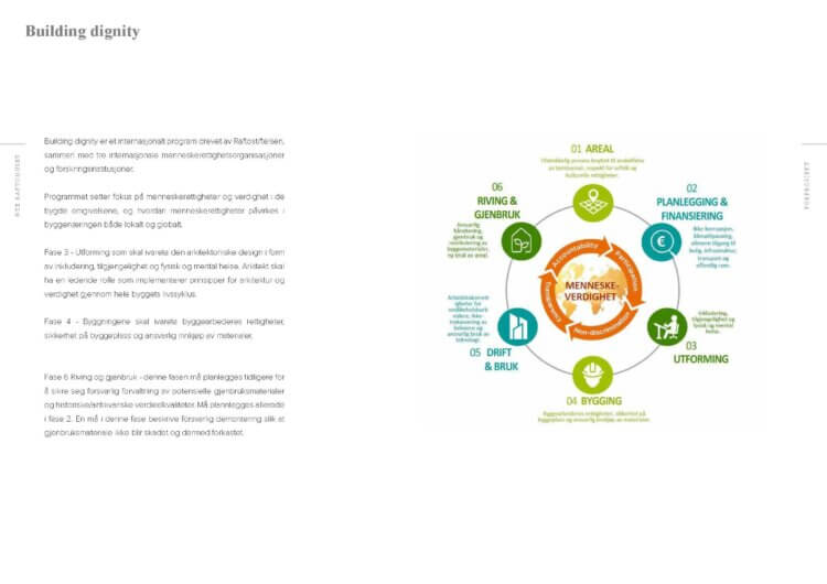 undervisningsmiljø og ivareta den eksisterende historiske bygningsmassen. Dette er et Building dignity-pilotprosjekt der alle faser av prosjektet er underlagt strenge regler for verdige arbeidsforhold og etiske innkjøp av materialer, og med høye miljømål med stor andel av gjenbruk og ombruk.