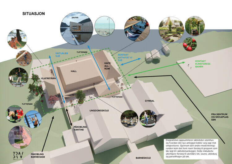 Under satsningen til Vestland fylkeskommune har vi utviklet et nyskapende aktivitetsanlegg i Luster kommune. Vi har tidligere jobbet med nyskapende aktivitetsanlegg både i Fusa, Hyllestad og Samnanger. Anlegget i Hafslo er i form av et bygg som huser idrettsal i kombinasjon med kulturarena, treningssenter, sosiale rom, samt store arealer for lek, rekreasjon og aktivitet – inne og utendørs.