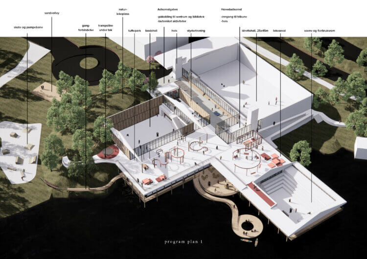Under satsningen til Vestland fylkeskommune har vi utviklet et nyskapende aktivitetsanlegg i Samnanger kommune. Vi har også jobbet med nyskapende aktivitetsanlegg innendørs i Luster, samt i Fusa og i Hyllestad, men da som utendørsanlegg. Anlegget i Samnanger er i form av et bygg som huser to idrettsaler, kultursal, treningssenter, sosiale rom, samt store arealer for lek, rekreasjon og aktivitet – inne og utendørs.
