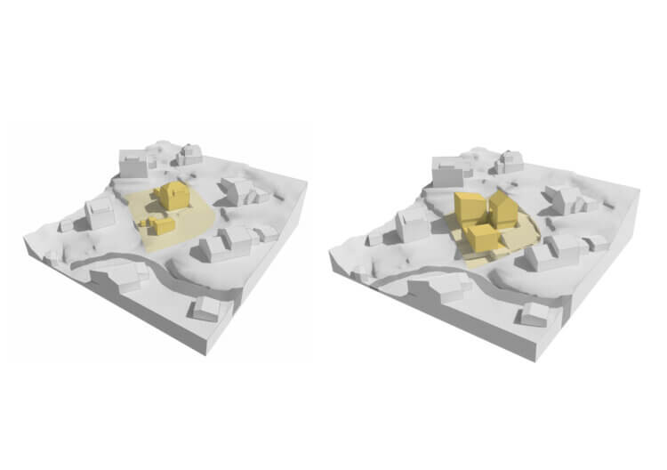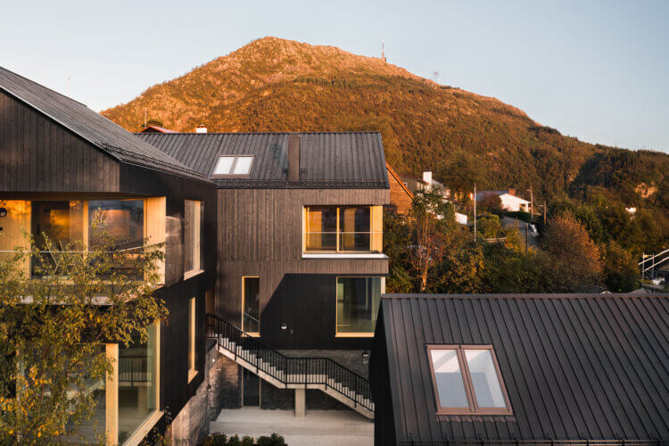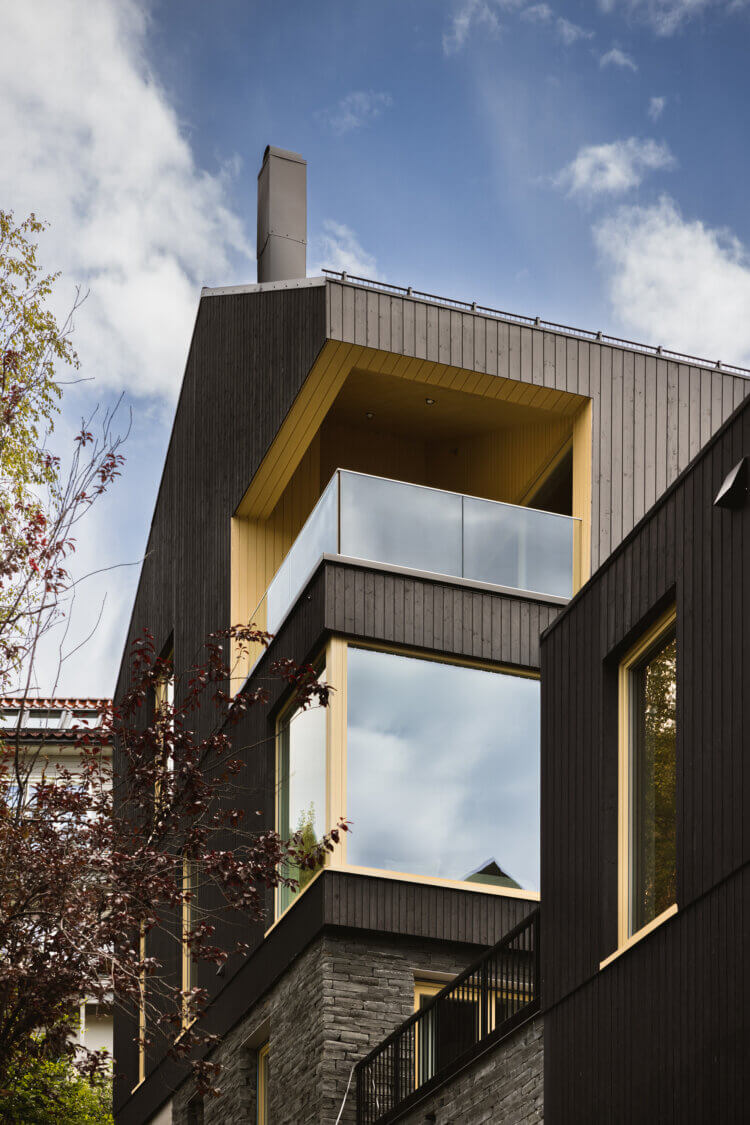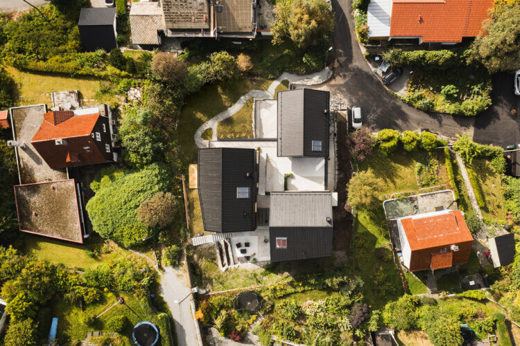 The new bodies and surfaces of the three houses are the results of an extensive site analysis in which surrounding buildings and landscapes were carefully assessed. The Nystuveien 35 buildings shall have open and villa-like qualities; the spaces between the volumes and the sizes of these volumes are calibrated in a manner which blend the houses into the existing environment. With a similar intention of integration, outdoor areas are designed in order to be maximally green.