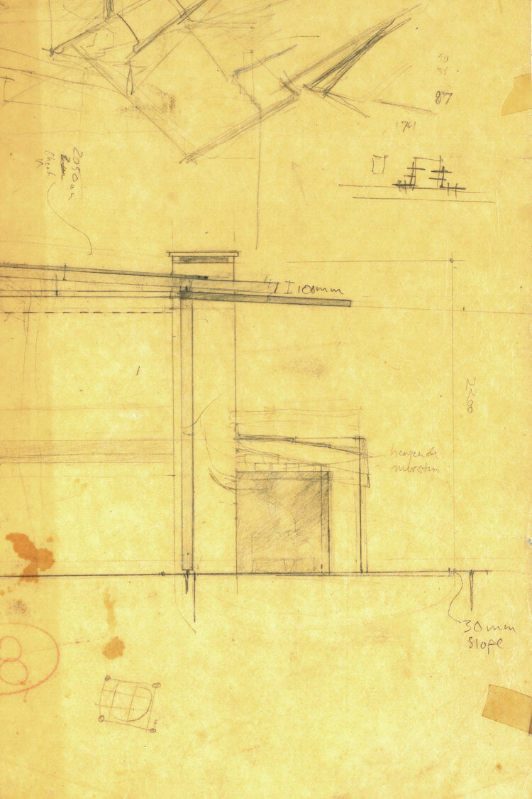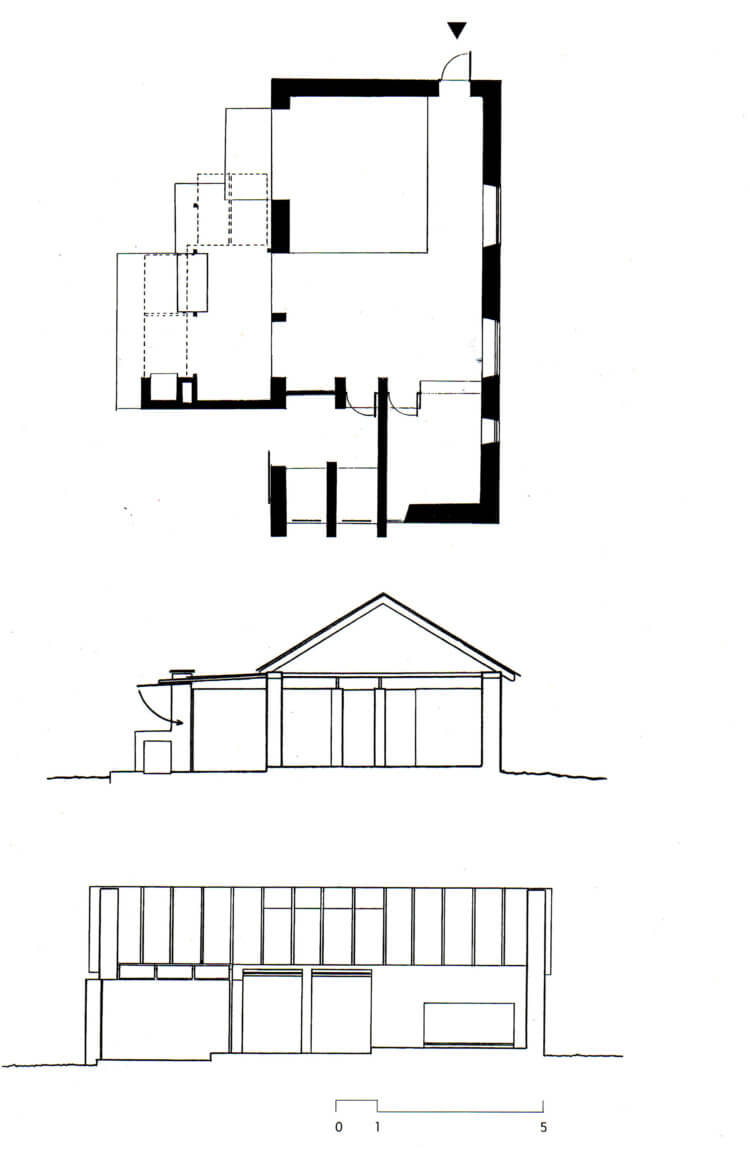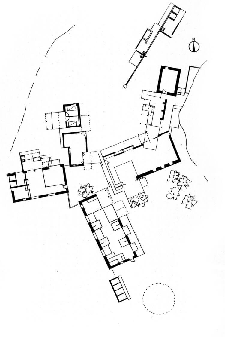 Traditional constructional materials and techniques have been carefully married to modern ones. Timber from nearby woods was brought to the site by hand and cut and planed, often with home-made tools, to make door and window frames. To reduce timber sections, rafters were trussed with steel wires. Stone walls have concrete ground and capping beams to defend them against earthquakes. Yet, while the concrete may have been relatively new, the stones themselves were prepared in traditional fashion, by laboriously hacking rounded river boulders flat so that they could be incorporated into rectilinear masonry.