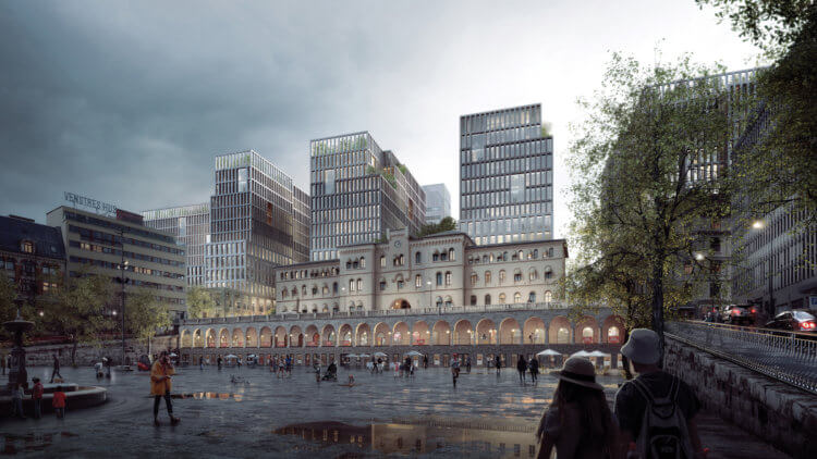 «RAK RYGG» (Straight Back) is Team DNA’s (Det Norske Arkitektkontor) concept, which includes three main parts. Grunnfjellet (The Bedrock), represents the solid and safe; Rundgangen (The Roundabout), the meeting and social interaction; and the Y Park, a landscape that takes care of history through new use and opens up the area for the public.