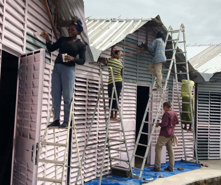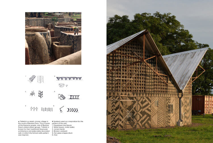 The outer wall is painted with the inspiration of traditional patterns and symbols in Burkina Faso traditional architecture.