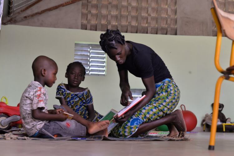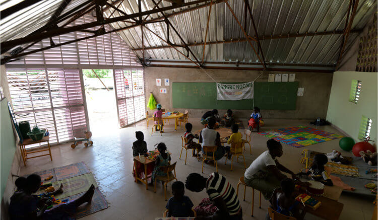 The school in Burkina Faso was designed for 120 kids aged from 2 to 6 years in the village of Sabou. It contains four classrooms, an office, sanitary spaces, a large multi-functional outdoor room with a kitchen and an a courtyard.