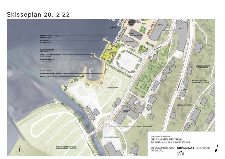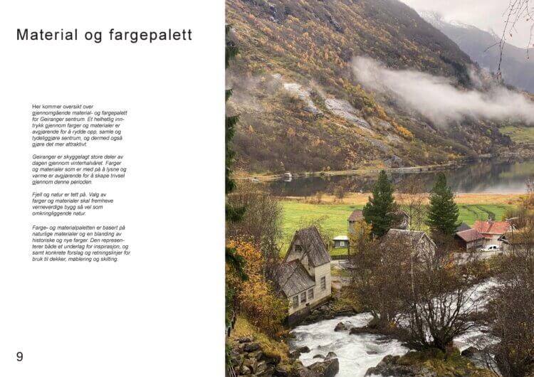 Det levende sentrum er mye mer enn form og funksjon, det er opplevelser, stemninger og drømmer. Det er flytende og omskiftelig slik som været og årstidene. Til grunn for studien ligger et grunnsyn at om Geiranger blir et godt sted for lokalsamfunnet, så blir det også et attraktivt sted for de besøkende. Det betyr at personlige forhold som erfaringer, livsfase, verdipreferanser og opplevelser av stedet får betydning, og at vi har lagt stor vekt på medvirkningsrundene og alle innspillene vi har fått gjennom dem når det kommer til de løsninger vi har valgt. Med et mål om å gjøre stedet bedre har det gjennom studien vært et mål om å ha et ekstra blikk på vintersesongen – både for å forlenge det sesongmessige potensialet for turisme, men ikke minst for å tilby kvaliteter og aktiviteter for