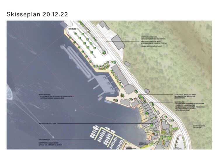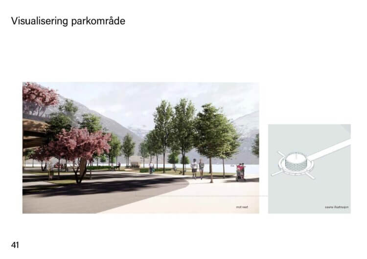 lokalbefolkningen gjennom den årstiden da det først og fremst er de som bruker stedet. Badstue, vinterbadeanlegg, overdekte aktivitetsarealer og nye funksjoner i sentrum underbygger dette. Gode sentrumskvaliteter oppstår som følge av gode og varierte forløp av rom med en skala som både rommer behovene gjennom turistsesongen, men som samtidig er tjenlig og oppleves som omsluttende og intime i de delene av året hvor trykket er lavere. Mye av dette oppdraget handler om å sette disse kvalitetene i spill, og gi form til noe som oppleves godt, trygt, kjent og nært, samtidig som det må ha kapasitet til å
