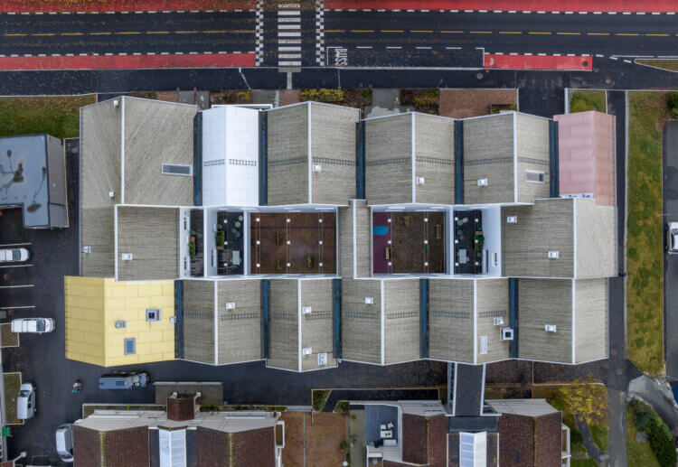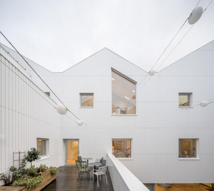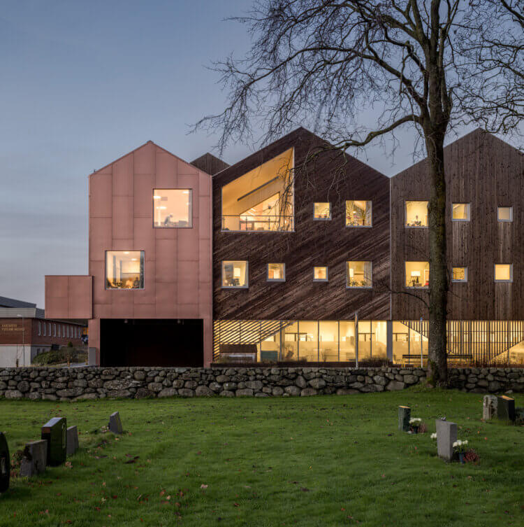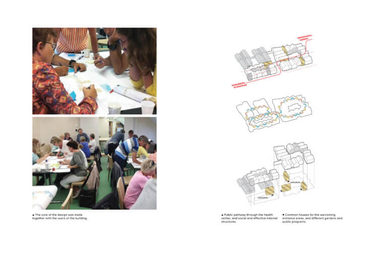 The vision is to create a new typology that will organize one of the most important welfare tasks in society and cover all aspects of the healthcare terminology. The idea of a hamlet where the well-being of home and treatment accommodations of a big institution are mixed, will inspire future institutions.The new healthcare facility offers a broad range of different treatments under one roof from nursing homes to doctors’ consultations and therapy. The building measures 11,000 sq. but seems much smaller thanks to a design where the building is scaled down to smaller entities. Each house in the building is built with natural materials and offers a homely atmosphere. A solid base in natural stone connects the houses like the stone fence in the local west coast landscape. The rest of the materials are almost exclusively built in wood. Between the houses a myriad of courtyards, recreational gardens and greenhouses make a green and welcoming atmosphere.