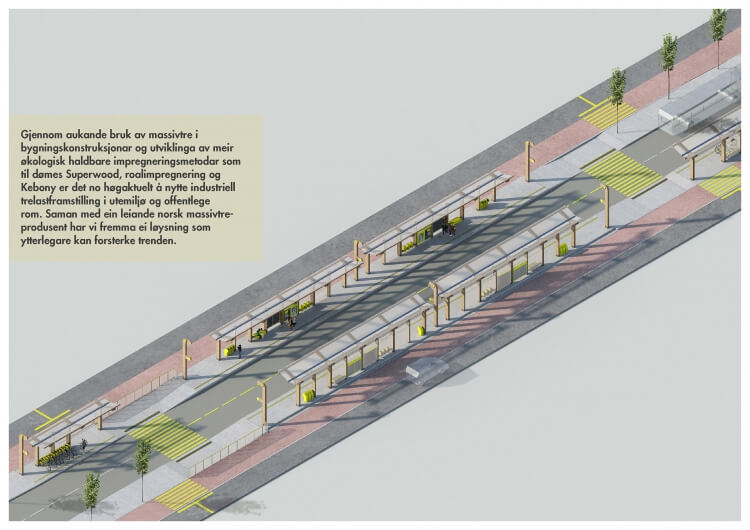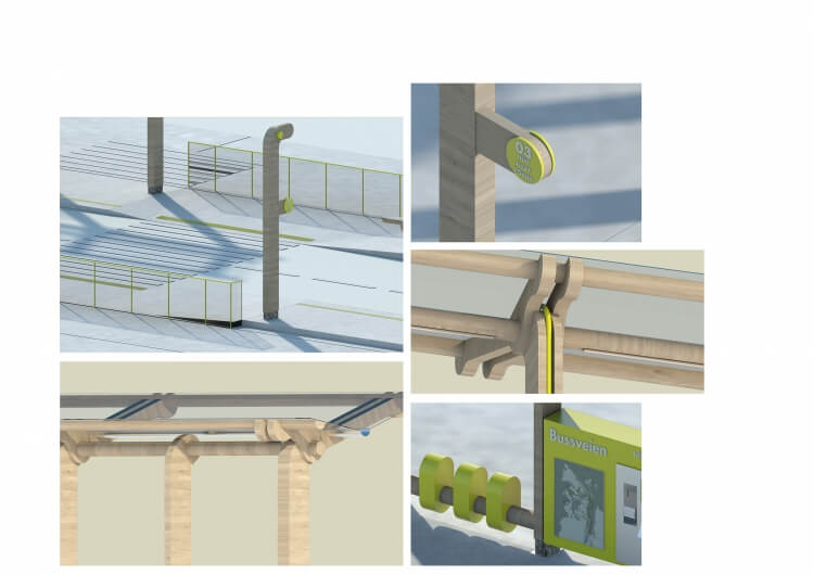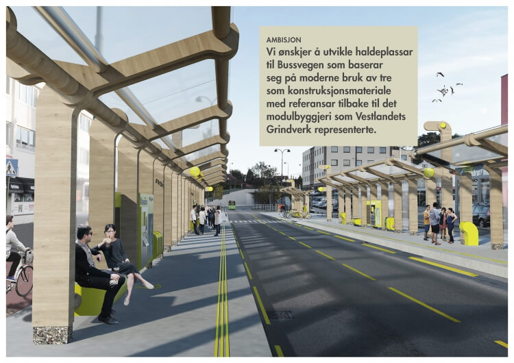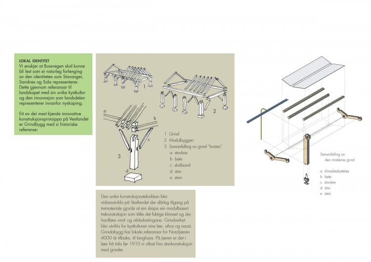 We wish to develop an identity for this new Bus Lane infrastructure in Stavanger based on the modern use of wood as a construction material with references back to the ‘Grindbygg’ west coast structures.