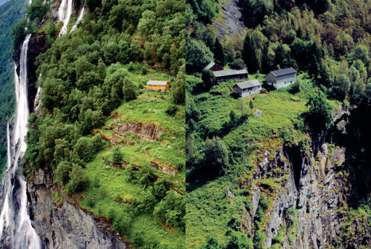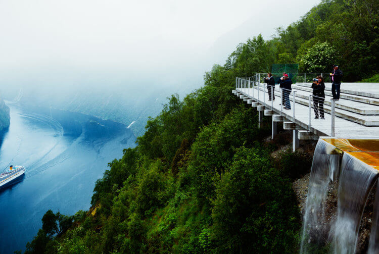 The town Geiranger is surrounded by steep mountains on each side of the fjord, something which has made the place one of the country’s most visited tourist destinations. The Geiranger Fjord was in 2005, together with the Nærøy fjord, incorporated into the UNESCO World Heritage list.
