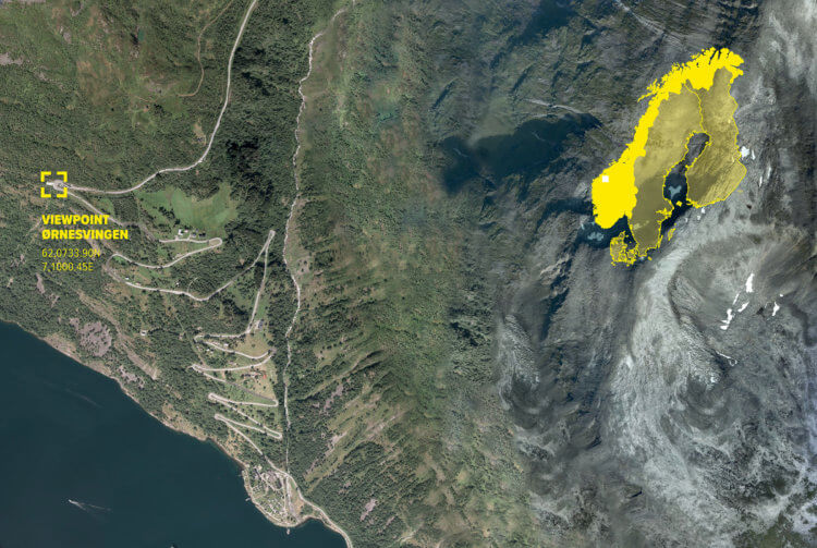 Ørnesvingen is the most spectacular viewpoint along the steep valley sides of Geiranger-fjord in Møre and Romsdal. Located at one of its many bends of the zig-zag road, the viewpoint gives tourists unique views over the recently acknowledged Unesco world heritage site