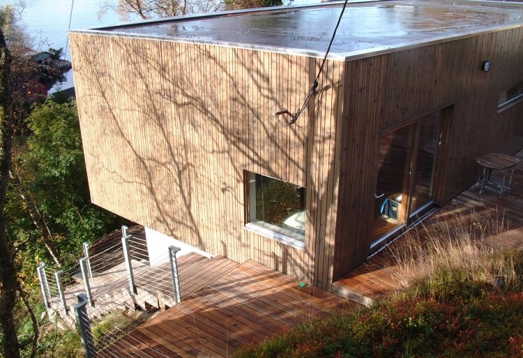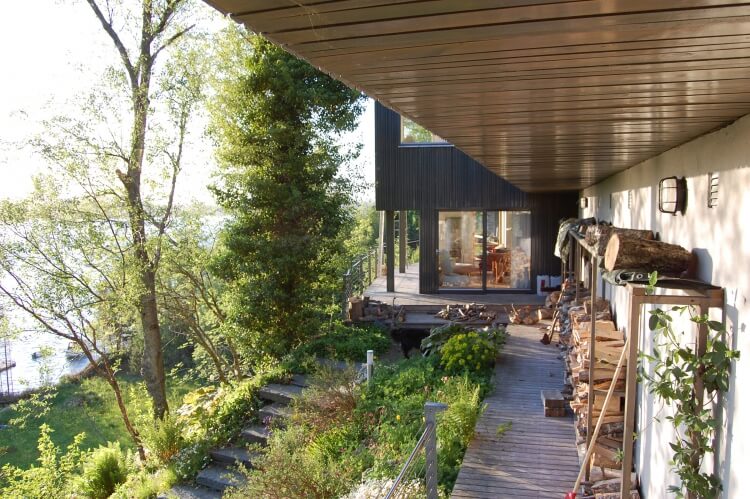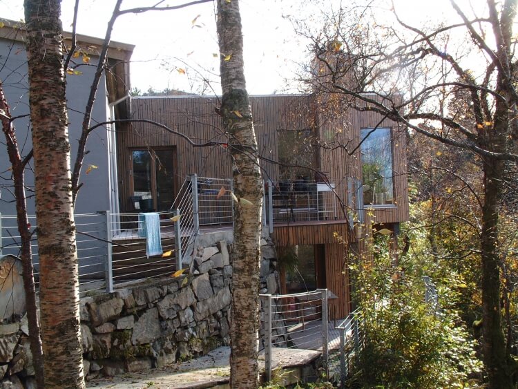 Open floor plans and several terraces make the most of the steep terrain and the great views.