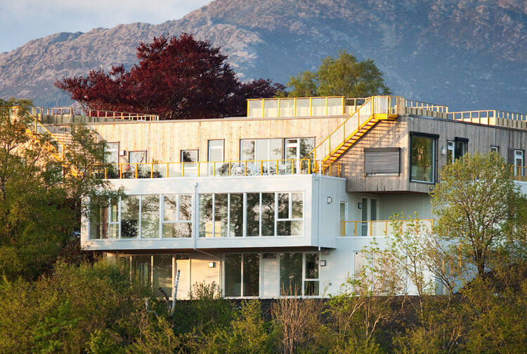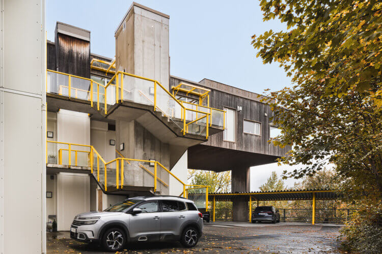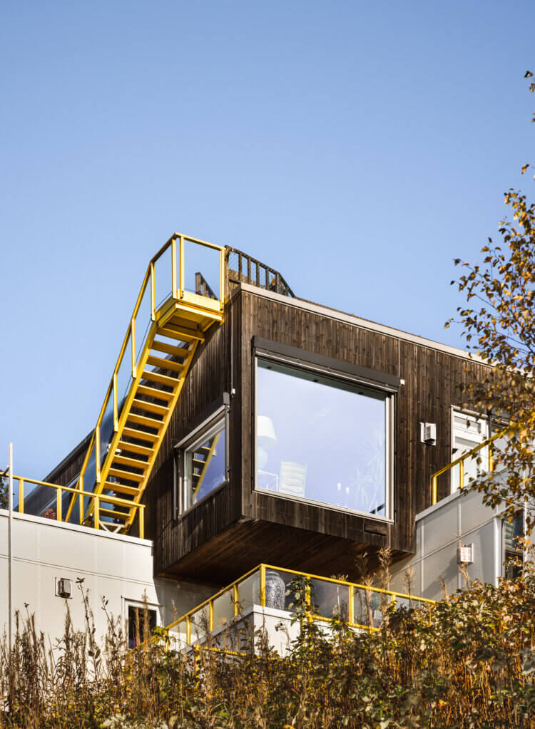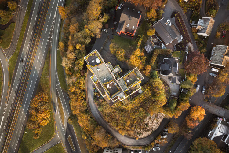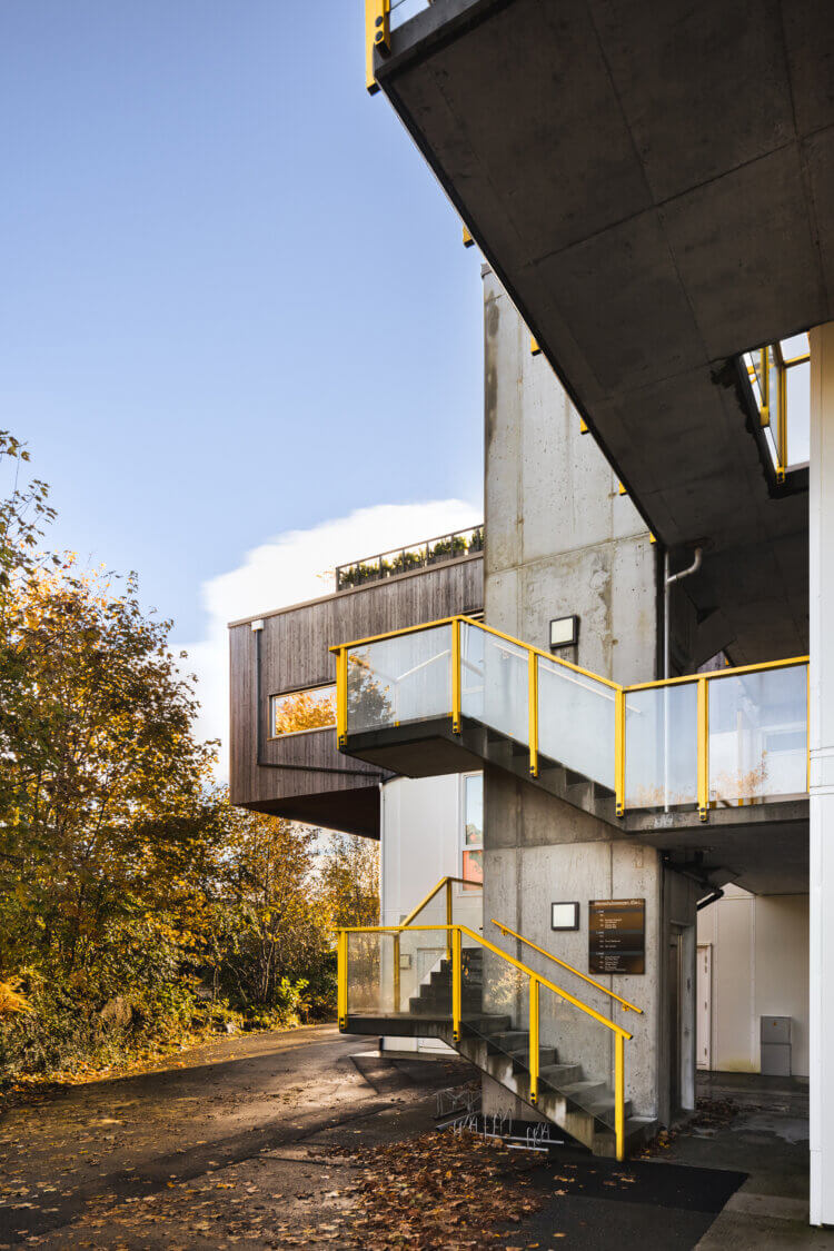 Where the main challenges of the plot were topography and traffic noise, the building enables both high utilization of the site and an appearance of small scale neighborhood